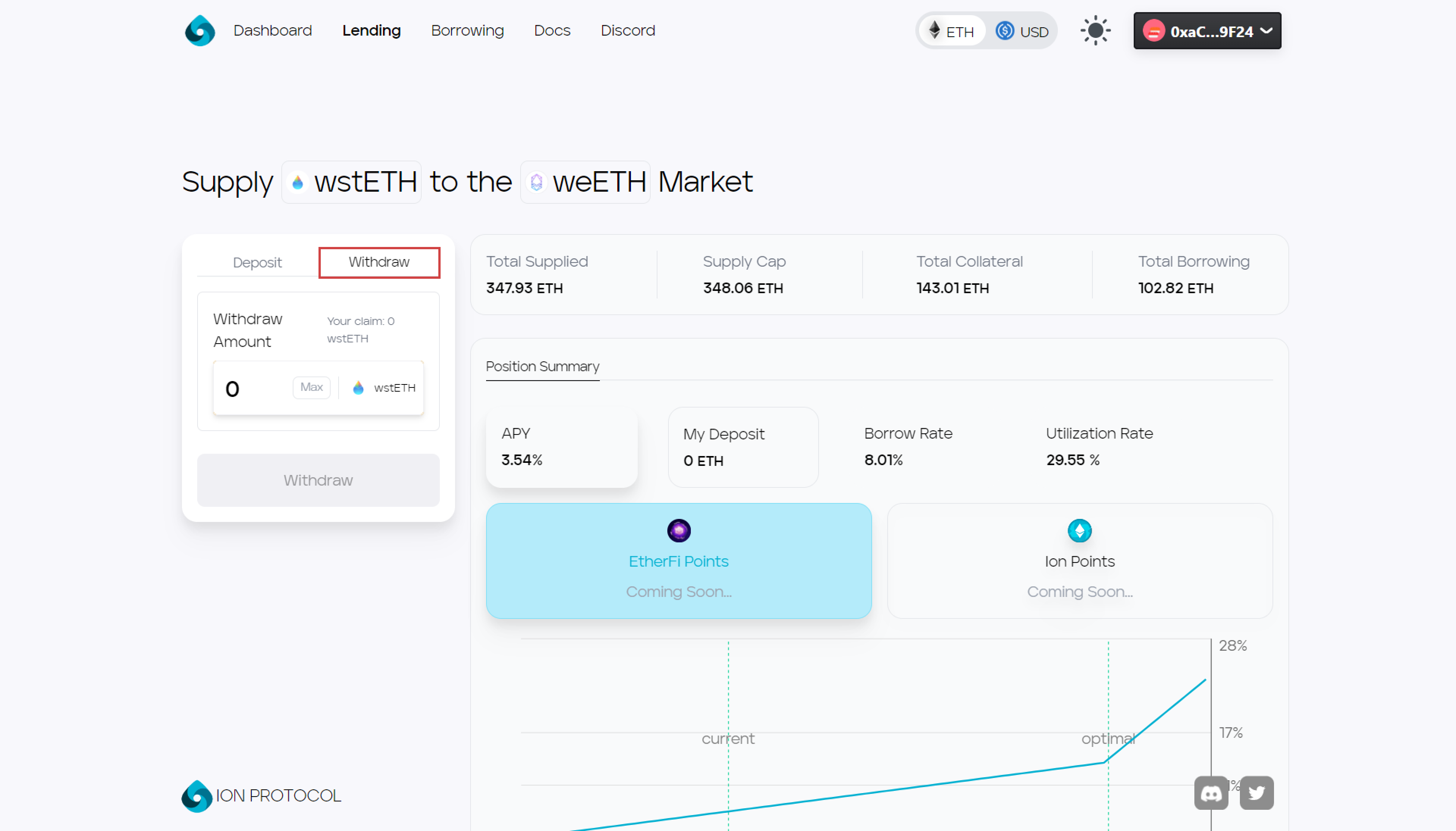 ## 2. Enter the amount to withdraw and press the withdraw button