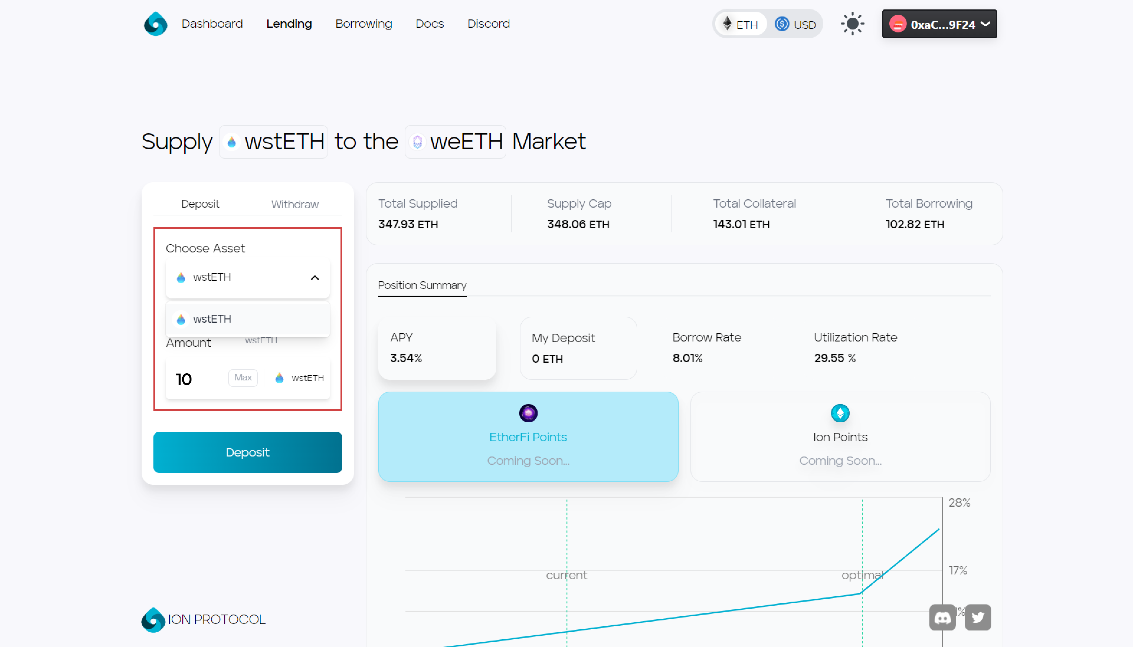 ### 4. Enter the amount to supply and press the deposit button