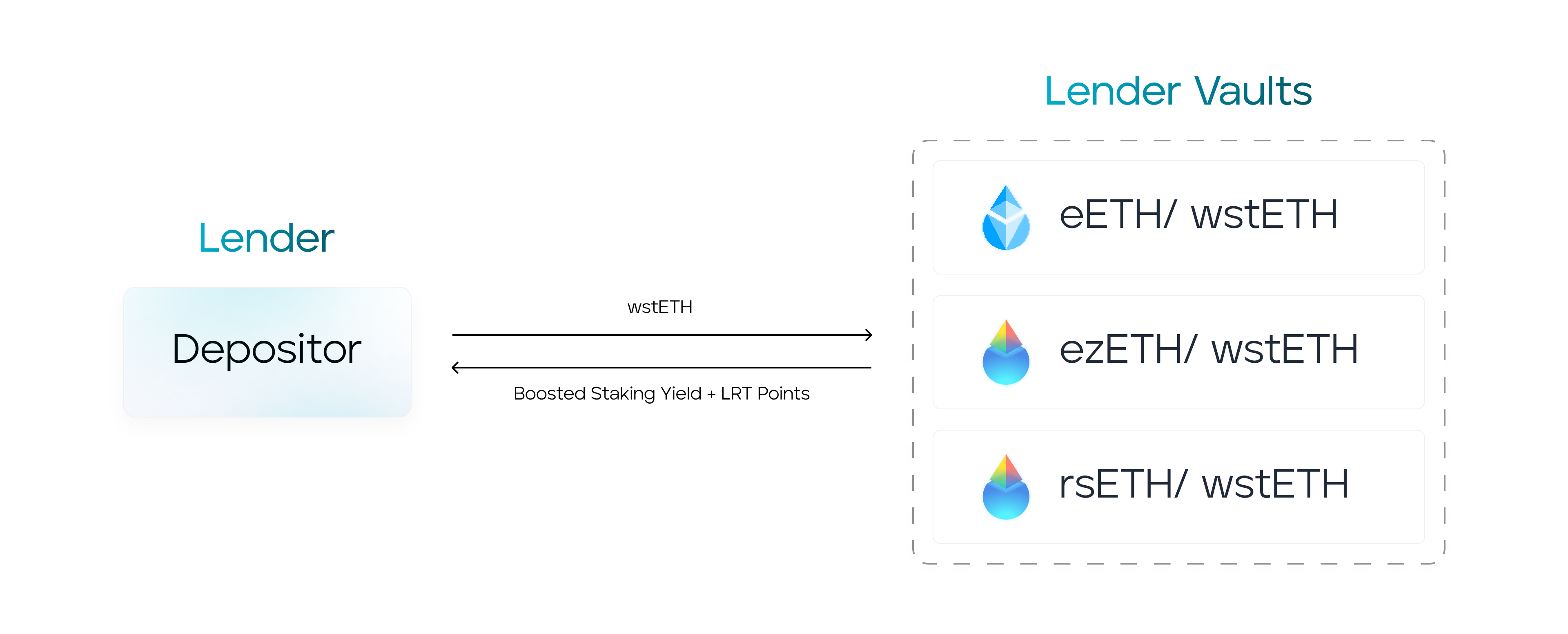 Supplying LSTs: Lenders contribute their LST to an isolated market, or a combination of isolated markets. In return, they receive interest payments based on the market's borrow rates, which are determined by the supply and demand dynamics within that isolated market. This is in addition to maintaining their staking yield.